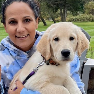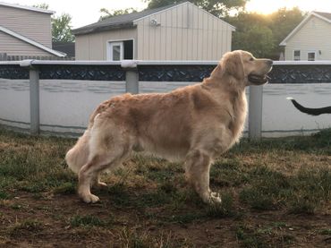 Our Goldens are born and raised in our home with our 2 children and our furry family members, until they are ready to go to their furever homes at 8 weeks old. They are socialized with other dogs and cats. We help make the transition to your home as easy as possible. We begin the potty training process around 3 weeks old, which will help to establish a routine in your home.